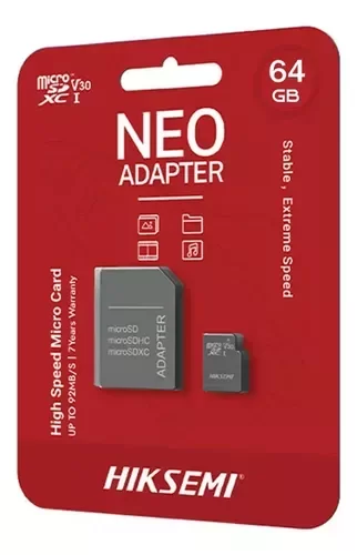 Memoria Micro SD 64GB HIKSEMI NEO ADAPTER 92MB/s c/adaptador SD