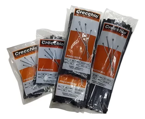 Precintos Crecchio 4.8 x 250mm negro NYLON 6.6 Proteccion UV unidad o bolsa x100